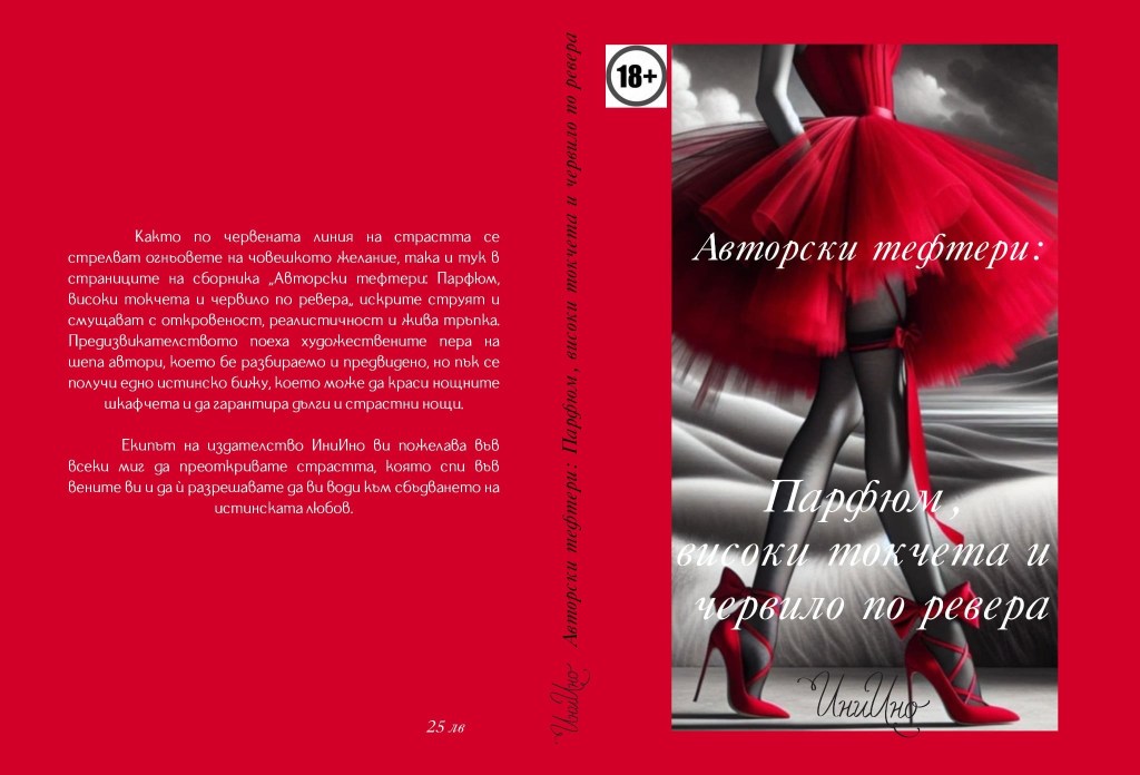 „Авторски тефтери: Парфюм високи токчета и червило по ревера“ е сборник с текстове на любовно-еротична тематика в поезия и проза, публикуван от Издателство Ини Ино през април 2025г.